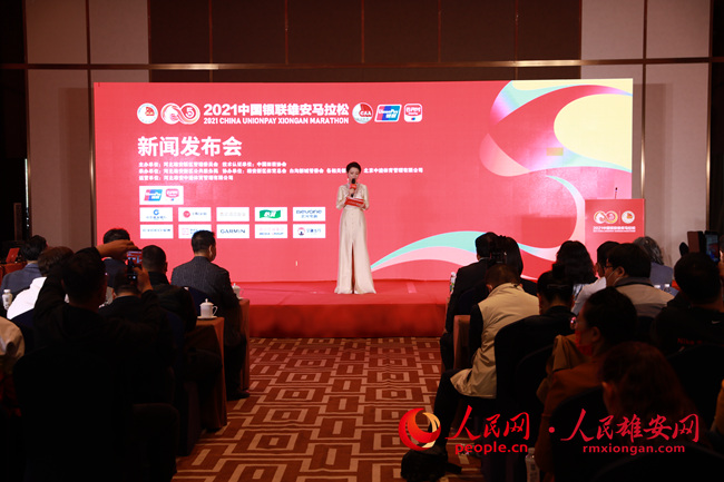 2021中國(guó)銀聯(lián)雄安馬拉松新聞發(fā)布會(huì)現(xiàn)場(chǎng)。人民網(wǎng) 劉師豪攝