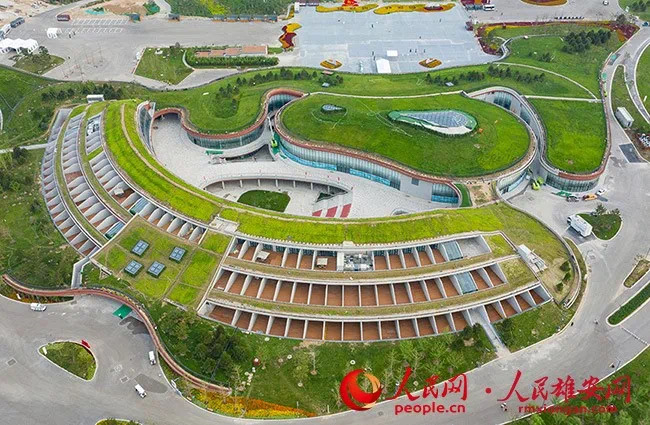 航拍雄安郊野公園雄安主場(chǎng)館。人民網(wǎng) 李兆民攝