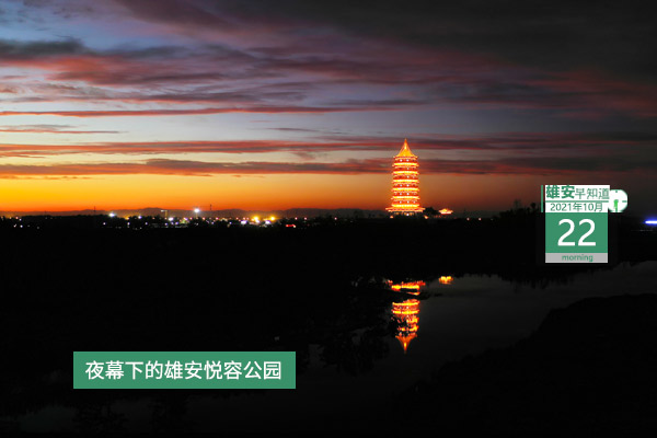 今天是2021年10月22日,星期五,天氣晴,2℃~14℃。在封面和大家見面的是夜幕下的雄安新區悅容公園。