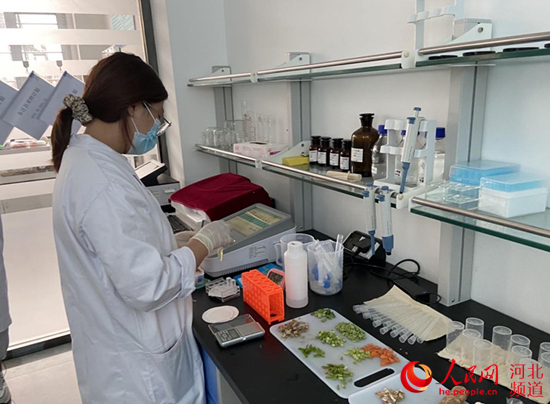 在荷花坑市場檢驗檢測中心的蔬菜水果快檢室內,工作人員在進行檢測。 人民網 付兆颯攝