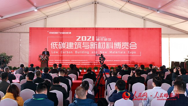 2021雄安新區(qū)低碳建筑與新材料博覽會開幕式現(xiàn)場。人民網(wǎng) 宋燁文攝