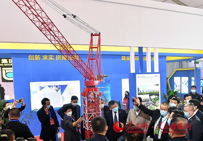 圖為巨大塔吊模型。據(jù)介紹,這是目前國際上起重重量最大的塔吊之一。人民網(wǎng) 宋燁文攝