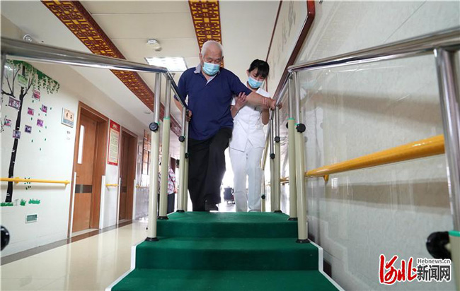 福緣居醫養中心護士陪老人做康復訓練。 通訊員馬羚攝