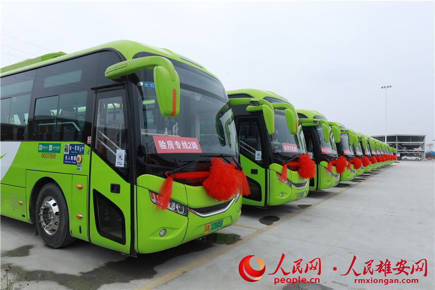 圖為雄安新區(qū)容東片區(qū)驗(yàn)房專(zhuān)線大巴。人民網(wǎng) 李兆民攝