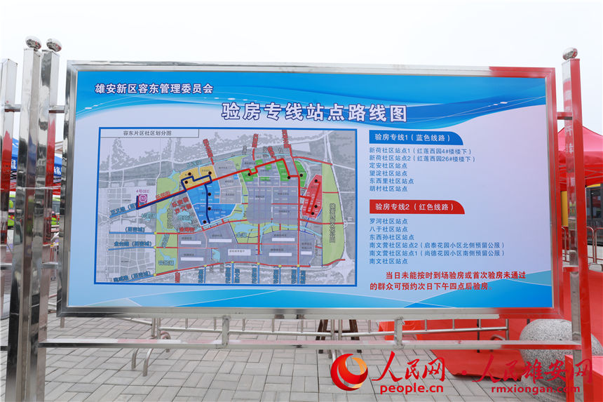 圖為雄安新區(qū)容東片區(qū)驗(yàn)房專(zhuān)線站點(diǎn)路線圖。人民網(wǎng) 李兆民攝