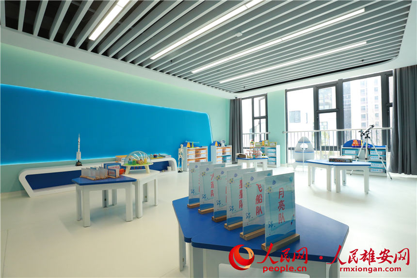 雄安容東片區(qū)容和佳泰幼兒園科學(xué)實(shí)驗(yàn)室,配有天文望遠(yuǎn)鏡、航天模型和各種興趣培養(yǎng)教具。人民網(wǎng) 李兆民攝