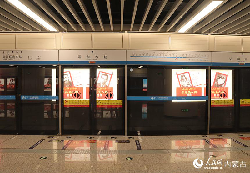 四個紅色主題站點分別位于地鐵1號線的呼和浩特東站、烏蘭夫紀(jì)念館站,地鐵2號線的內(nèi)蒙古體育館站、諾和木勒站。1號線列車及站點打造“紅色記憶網(wǎng)上展館”主題,2號線列車及站點打造“數(shù)風(fēng)流人物”主題。