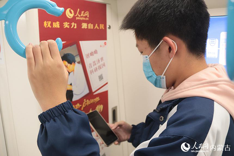 學(xué)生正在掃描海報上的二維碼。人民網(wǎng) 劉藝琳攝
