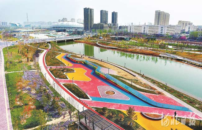 航拍衡水市吳公渠生態公園。今年,吳公渠生態修復整治工程列入了“學史力行為民解憂——我為群眾辦實事”實踐活動項目清單。目前,吳公渠兩岸一派生機盎然,周邊生態環境徹底改善。河北日報記者焦磊攝