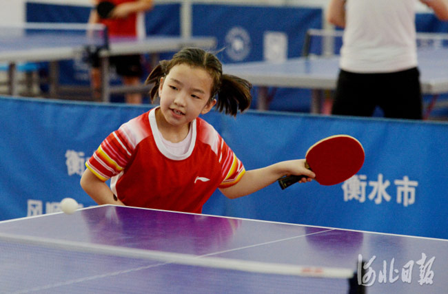 5月25日17時50分,衡水市新苑小學乒乓球隊的同學正在練習乒乓球。河北日報記者張昊攝