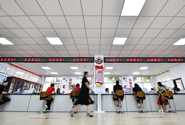 7月22日,居民在河北省遷安市興安街道明珠社區綜合服務站內辦理業務。 新華社記者牟宇攝