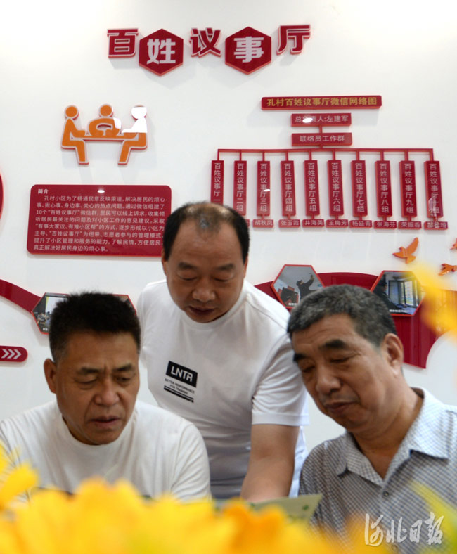6月18日,邢臺市信都區泉西街道科苑社區工作人員在梳理“百姓議事廳”微信群里居民提出的建議和反映的問題。河北日報記者杜柏樺攝