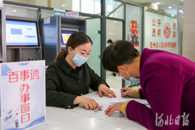 10月27日,晉州市行政審批局便民服務大廳內,工作人員在幫助群眾辦理工商營業執照。河北日報通訊員賈再興攝