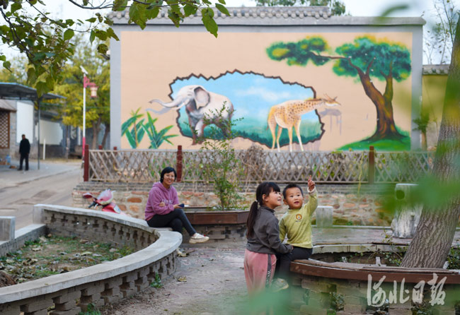10月30日,臨城縣西豎鎮程陽村村民帶孩子在村里的小游園休閑玩耍。 河北日報記者趙永輝攝