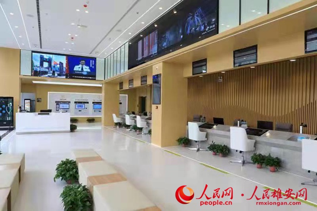 大廳位于雄安新區(qū)容城縣容仁路19號,整體面積800余平方米,其中接待區(qū)域面積約350平方米,可滿足日均200人次、峰值500人次的業(yè)務(wù)需求,能滿足當(dāng)前及未來一段時間內(nèi)雄安新區(qū)業(yè)務(wù)需要。