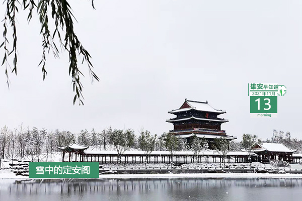 今天是2021年11月13日,星期六,天氣晴 ,-1℃~16℃。在封面和大家見面的是雪中的定安閣。