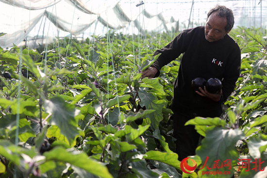 邢臺市任澤區南甘寨村農民在采摘茄子。 宋杰攝
