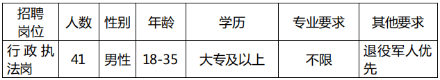 此次招聘要求報名者為18歲至35歲男性,大專以上學歷,退役軍人優先。錄用后,基本工資為3000元/人/月,績效工資為600元/人/月,并繳納五險一金。