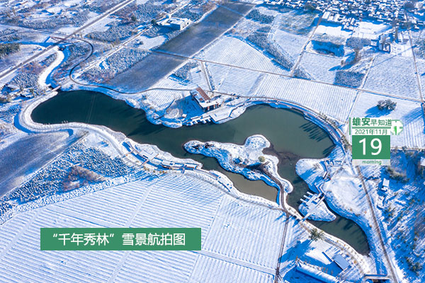 今天是2021年11月19日,星期五,天氣陰 ,3℃~8℃。在封面和大家見(jiàn)面的是雄安“千年秀林”雪景航拍圖。