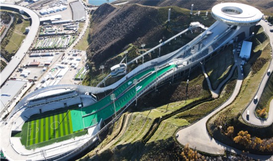 10月20日拍攝的張家口賽區國家跳臺滑雪中心“雪如意”(無人機照片)。新華社記者 金皓原 攝