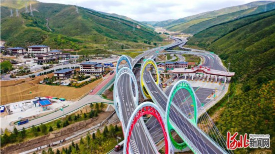 2021年8月31日,無人機航拍的延崇高速太子城互通出口處的和平驛站(即太子城服務區)。 河北日報記者耿輝攝