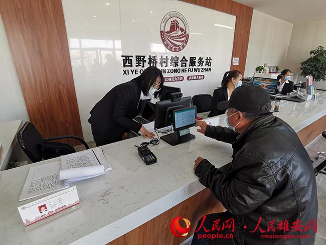 記者在容城縣南張鎮(zhèn)西野橋村綜合服務站看到,金融服務系統(tǒng)的終端也延伸到了這里。