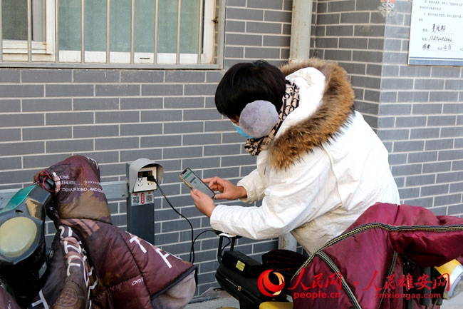 楊紅芳正在掃碼充電。人民網(wǎng) 劉師豪攝