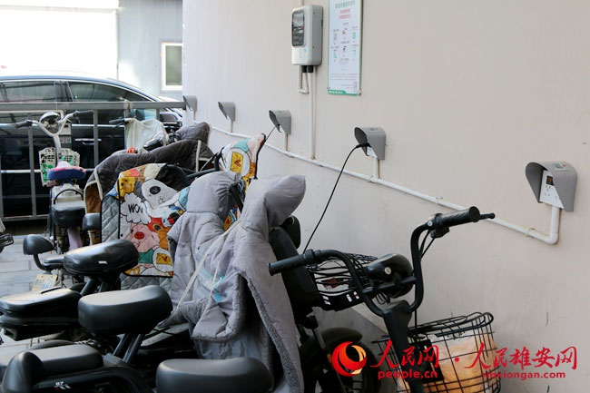 記者走訪發(fā)現(xiàn),華鼎小區(qū)內(nèi)看到,電動(dòng)車基本都停放在車棚內(nèi)或居民樓下的空地上,樓道里空蕩蕩地;在安新縣育德花園小區(qū),也有不少電動(dòng)車在車棚內(nèi)的充電樁上充電。