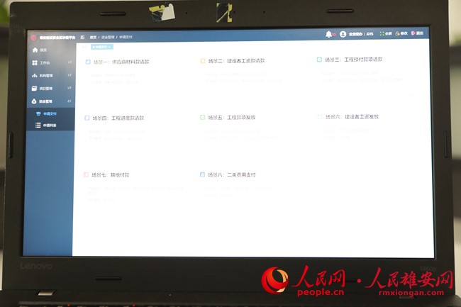 雄安建設資金區塊鏈平臺界面。人民網 劉師豪攝