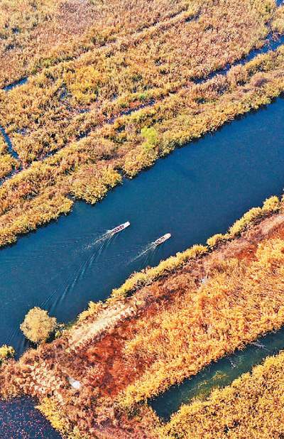 船只行駛在白洋淀內。