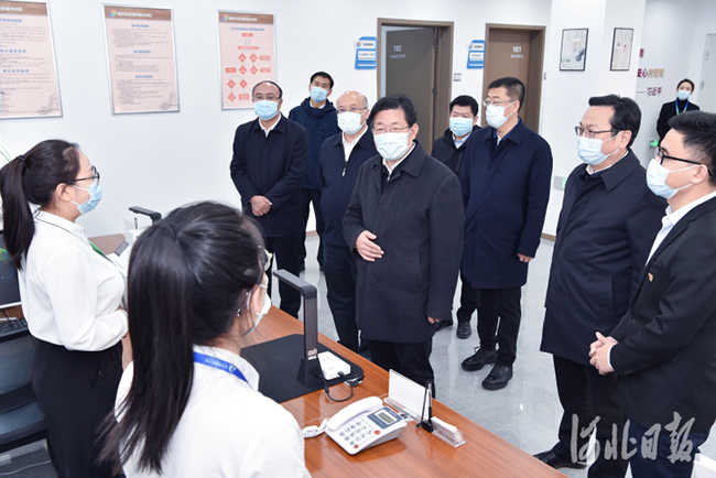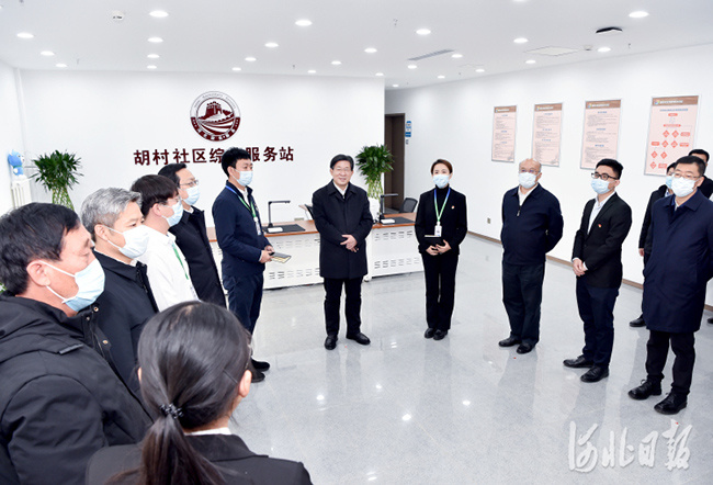 12月4日,省委宣講團(tuán)團(tuán)長(zhǎng)、省委書記、省人大常委會(huì)主任王東峰到雄安新區(qū)宣講黨的十九屆六中全會(huì)精神并調(diào)研檢查。這是王東峰、王正譜在胡村社區(qū)黨群服務(wù)中心,看望慰問(wèn)社區(qū)工作者。 河北日?qǐng)?bào)記者趙海江攝