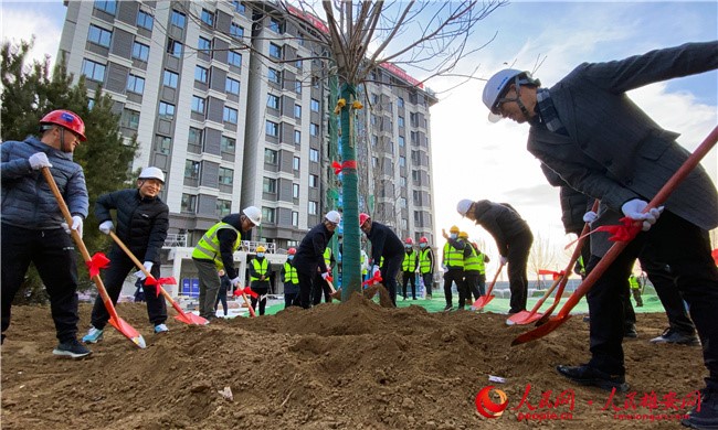 儀式現場,與會人員共同栽下容西片區的第一棵樹。人民網 宋燁文攝