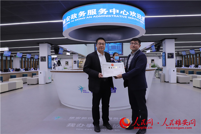 圖為營業(yè)執(zhí)照頒發(fā)現(xiàn)場。雄安新區(qū)宣傳網(wǎng)信局供圖