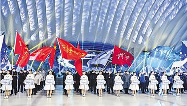 12月12日,以“相約冰雪 全城熱練”為主題的石家莊市第三屆冰雪運(yùn)動(dòng)會(huì)在石家莊滑冰館開(kāi)幕。來(lái)自石家莊市各縣(市、區(qū))23個(gè)代表團(tuán)的近3000人參賽。圖為開(kāi)幕式現(xiàn)場(chǎng)。耿輝攝