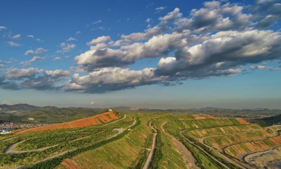 這是河北省邯鄲市叢臺區(qū)廢棄礦山修復(fù)打造的紫山生態(tài)涵養(yǎng)區(qū)(2020年6月14日,無人機(jī)照片)。 新華社記者 朱旭東 攝