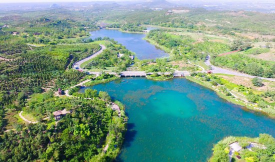 這是唐山市豐潤區(qū)王官營鎮(zhèn)境內(nèi)的金隅冀東水泥唐山分公司已修復(fù)的石灰石礦區(qū)(2019年8月30日無人機(jī)拍攝)。新華社記者 楊世堯 攝