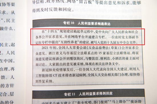 12月6日,《人民日報》3版刊發文章《“中國的民主制度充滿了中國智慧”——多國人士積極評價<中國的民主>白皮書》。文中,英國巴斯市副市長余德爍接受采訪表示,對白皮書中有中國網友建議開展“互助式養老”被列入“十四五”規劃的案例有深刻印象:“中國的民主渠道旨在不斷了解‘人民想要什么’和‘政府需要做什么’,涉及更多的民眾參與,也更貼近人民的現實和利益。”