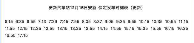 9、安新汽車站12月15日更新安新至保定發(fā)車時刻表。