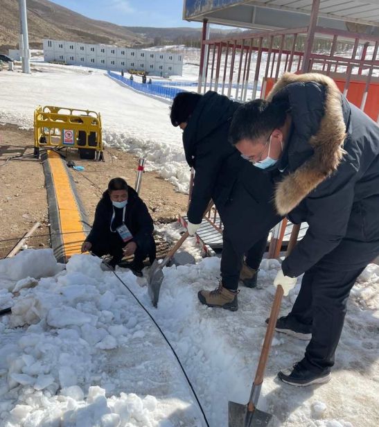 圖為國家越野滑雪中心通信保障團(tuán)隊的工作人員正在施工。 河北聯(lián)通供圖