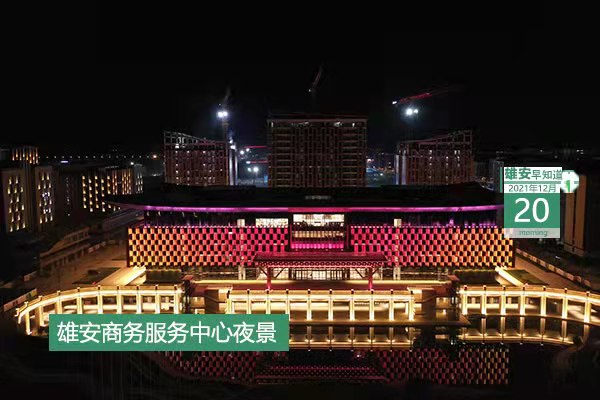 今天是2021年12月20日,星期一,天氣晴,-5℃~10℃。在封面和大家見面的是雄安商務服務中心夜景。