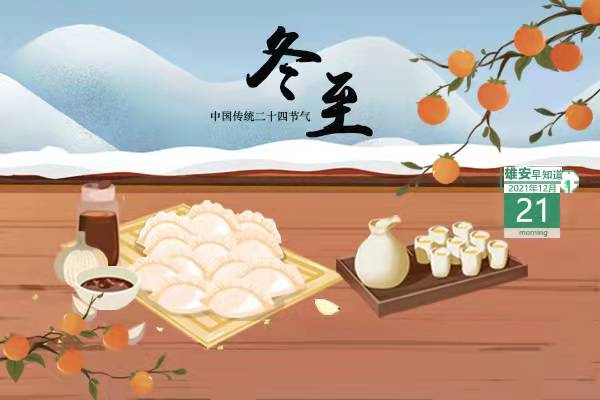 今天是2021年12月21日,星期二,天氣晴,-3℃~9℃。今天冬至,冬至過后將進(jìn)入一個最寒冷的階段,也就是人們常說的“進(jìn)九”和“數(shù)九寒天”了。冬至被視為冬季的大節(jié)日,古代民間有“冬至大如年”的講法。冬至南方有祭祖、宴飲的習(xí)俗,北方冬至日有吃餃子的習(xí)俗。