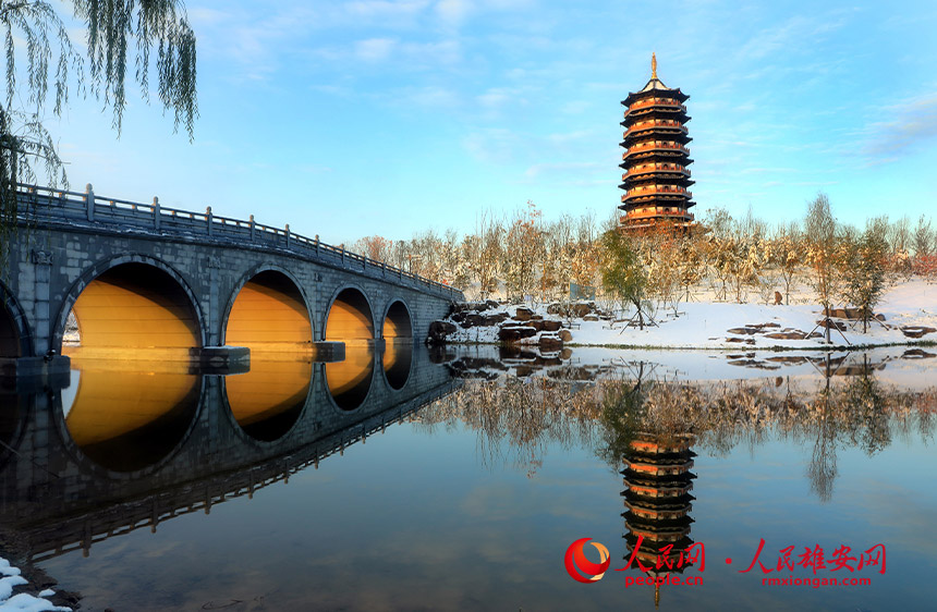 雪后悅容公園金光穿洞的美景。胡忠攝
