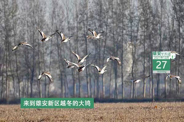今天是2021年12月27日,星期一,天氣晴,-8℃~5℃。在封面和大家見面的是到雄安新區越冬的大鴇。