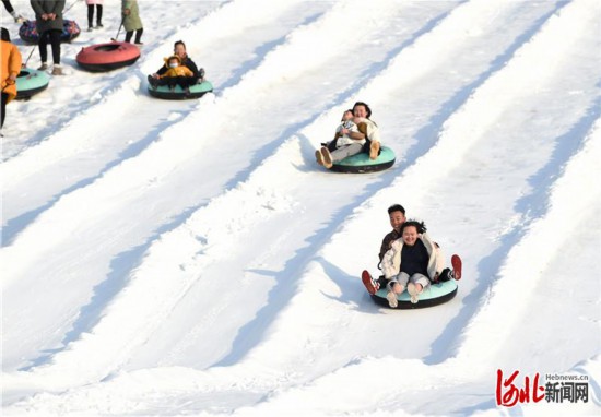 1月2日,游客在臨城縣綠嶺冰雪樂園滑雪圈,享受冰雪樂趣。河北日報(bào)記者趙永輝攝
