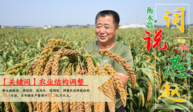 衡水市農業農村局局長何洪超表示,在穩定糧食生產方面,衡水市劃定480萬畝糧食生產核心區,細化落實到鄉鎮、村、地塊,新建設高標準農田45萬畝。以農業園區和“萬元田”為抓手,大力發展現代都市型農業,調整農業種植結構70.4萬畝,“萬元田”達到33萬畝。2021全年糧食產量預計87.3億斤以上。