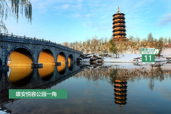 今天是2022年1月11日,星期二,天氣晴,-9℃~3℃。在封面和大家見(jiàn)面的是雄安新區(qū)悅?cè)莨珗@一角。
