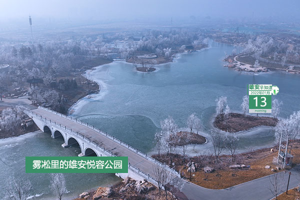 今天是2022年1月13日,星期四,天氣晴,-8℃~2℃。在封面和大家見面的是雄安悅容公園霧凇景觀。