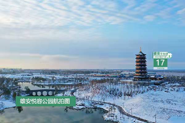 今天是2022年1月17日,星期一,天氣晴,-9℃~6℃。在封面和大家見面的是雄安悅容公園航拍圖。