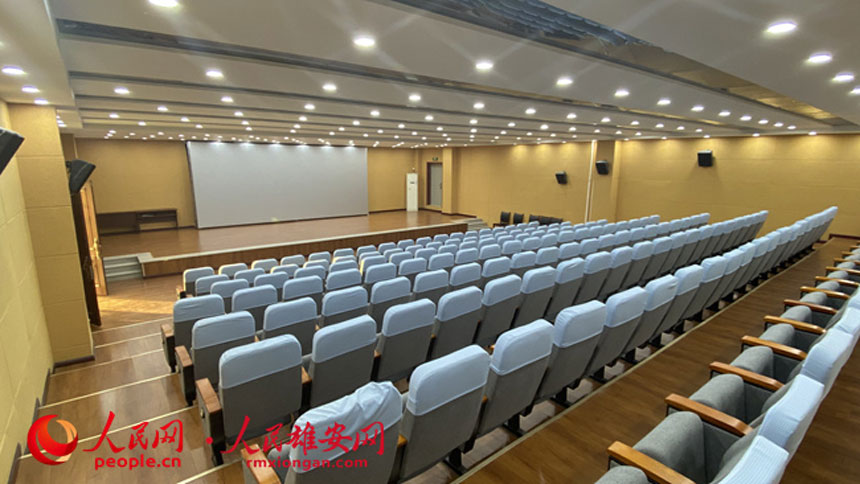 朱各莊村黨群服務中心內的文化禮堂,每周五、六免費播放電影。人民網 劉師豪攝