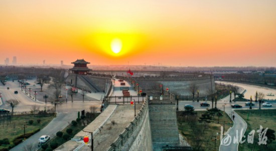 2021年1月1日,新年的第一縷陽光灑在石家莊市正定南城門上。河北日報記者耿輝攝